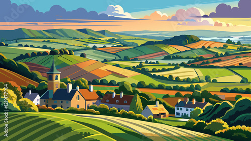 © williamnoah, Naklejka premium Somerset countryside to Hinkley Point from Quantocks in HDR