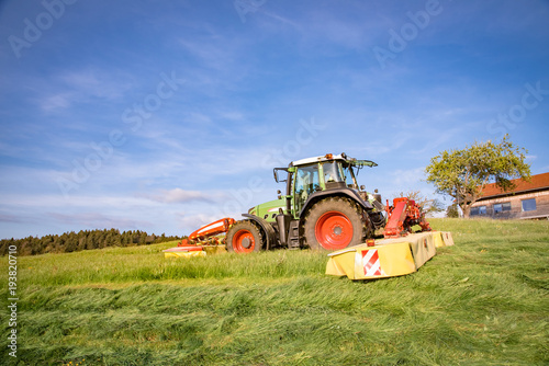 Obraz premium Sommer - Erntezeit, Landwirt mäht Gras für Grassilage