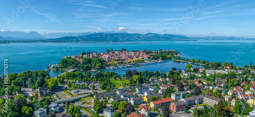 © ARochau, Fototapeta premium Sommertag in der bayerischen Stadt Lindau am Bodensee, Blick zur Insel