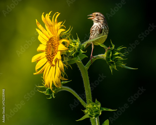 Fototapeta premium Song Sparrow On Sunflower