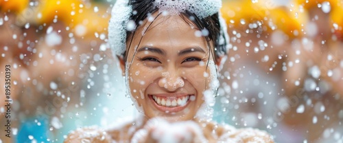 © 2D_Jungle, Fototapeta premium Songkran parade, vibrant colors and splashes, copy space, beautiful lighting