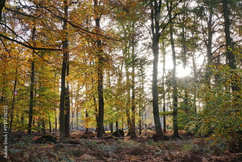 Obraz premium Sonne im Herbstwald
