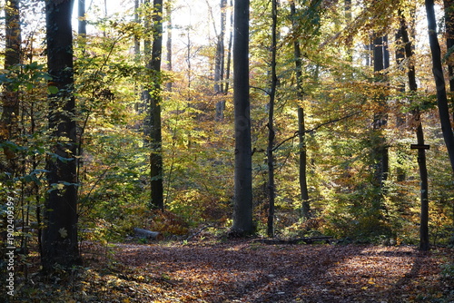 Obraz premium Sonne im Herbstwald