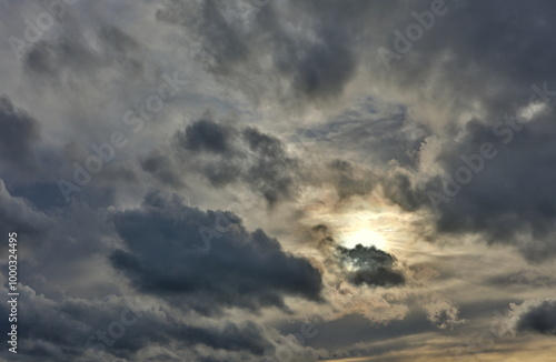 © christiane65, Fototapeta premium Sonne und Wolken in der Dämmerung
