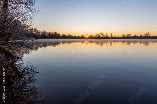 Fototapeta premium Sonnenaufgang am Kiesteich
