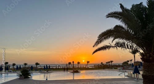 Obraz premium Sonnenaufgang am Pool in Ägypten
