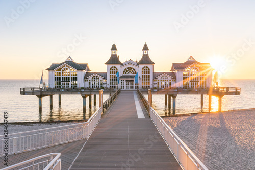 © ThomBal, Obraz premium Sonnenaufgang an der Seebrücke in Sellin, Deutschland