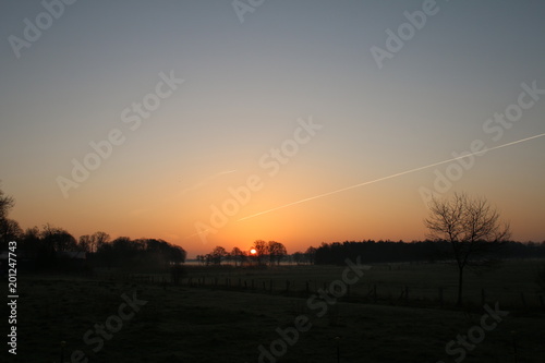 © S. Lorenzen-Mueller, Obraz premium Sonnenaufgang über den Pferdeweiden