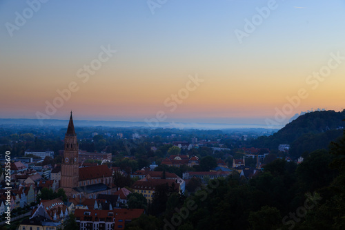© Johannes, Fototapeta premium Sonnenaufgang über Landshut mit Nebel im Herbst