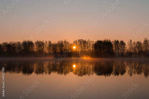 © Stefan, Fototapeta premium Sonnenaufgang mit Nebel am See