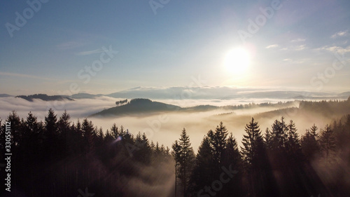 Fototapeta premium Sonnenaufgang mit Nebel im Sauerland