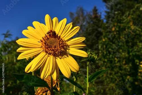 Fototapeta premium Sonnenblume, mehrjährig, Winterhart, Blüte, hübsch, gelb Biene, Nektar, Natur, Bio-Garten
