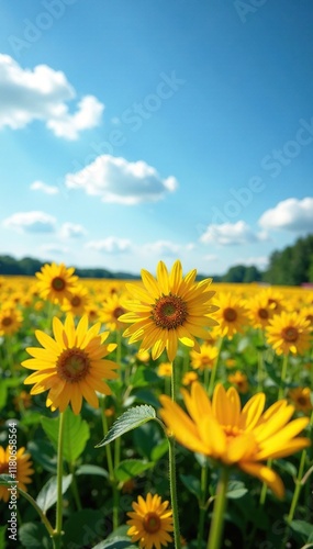 Fototapeta premium Sonnenblumen stretching towards the sky in a vast meadow, flowers, field,...
