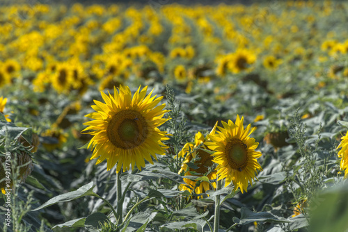 Fototapeta premium Sonnenblumenfeld Nahaufnahme