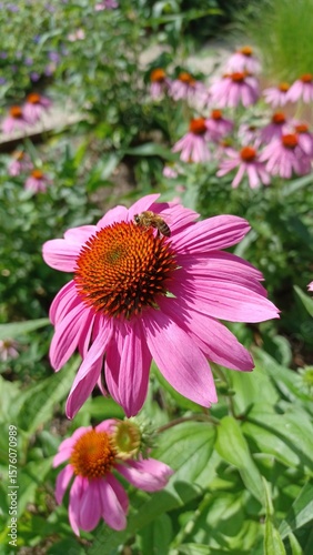 © JeannesHealingGarden, Obraz premium Sonnenhut, Biene auf Blume im Garten im Sommer