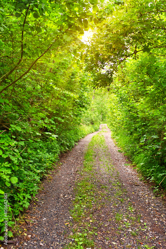 Fototapeta premium Sonnenstrahlen auf einem Waldweg im Frühling