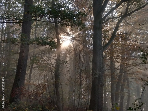 Obraz premium Sonnenstrahlen im Herbstwald