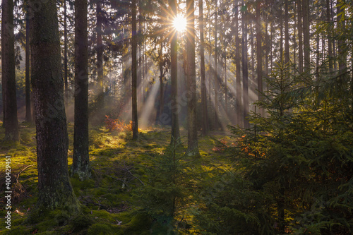 Obraz premium Sonnenstrahlen im Wald