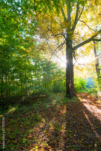 Fototapeta premium Sonnenstrahlen in einem Walden im Herbst