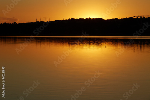 Fototapeta premium Sonnenuntergang am Möhnesee, Stockumer Damm, Kreis Soest, August 2023