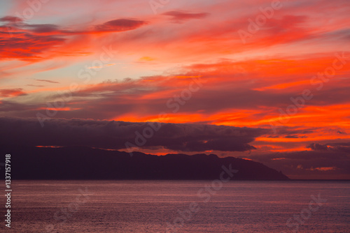© ewa, Fototapeta premium Sonnenuntergang am Meer, im Hintergrund La Gomera