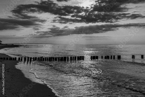 Fototapeta premium Sonnenuntergang am Meer in schwarz-weiss an der Ostsee