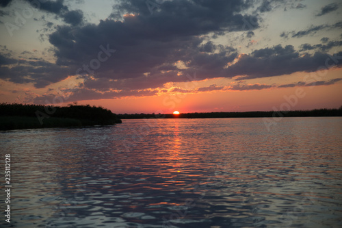 Fototapeta premium Sonnenuntergang auf dem Okavango Fluss in Botswana