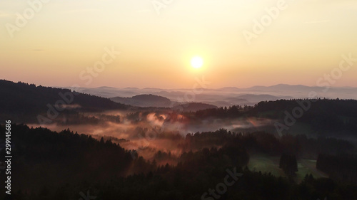 © Max, Fototapeta premium Sonnenuntergang über den Hügeln des Bayerischen Waldes