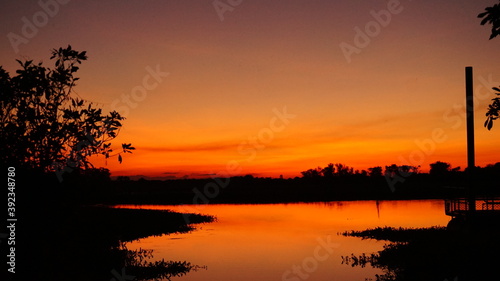 Obraz premium Sonnenuntergang im Wasser gespiegelt