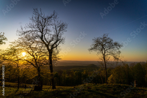 Fototapeta premium Sonnenuntergang mit Bäumen im Vordergrund