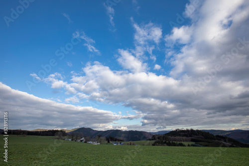 © scaleworker, Obraz premium Sonnenuntergang mit dramatischen Wolken und Horizont