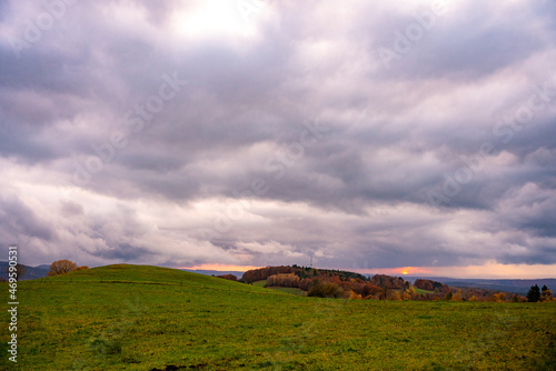 Obraz premium Sonnenuntergang, Wolken, Wind, Deutschland, Rhön