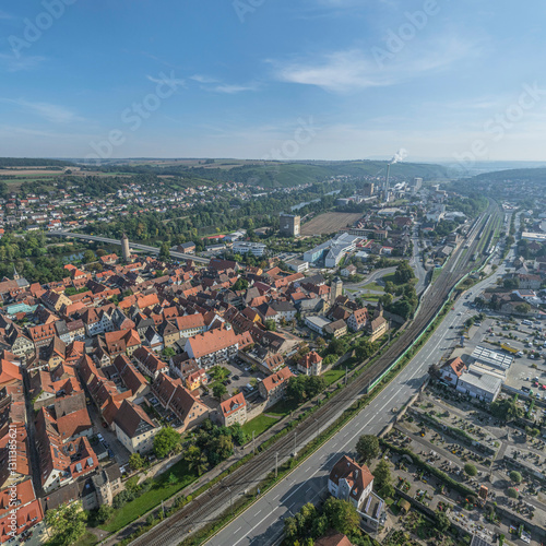 Fototapeta premium Sonniger Tag im Spätsommer über Ochsenfurt im Maindreieck in Unterfranken