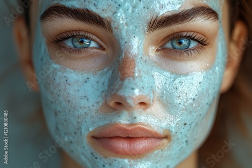 Fototapeta premium "Soothing Beauty Ritual: Close-Up of Face Mask Application Process on...