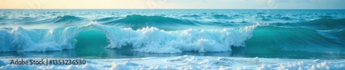 © Phennapha, Fototapeta premium Soothing oceanic hues blend into gentle waves, tranquil, ocean, calm