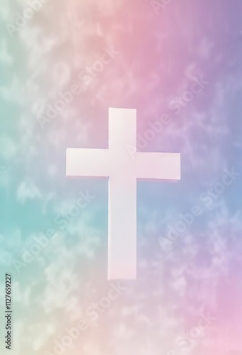 Obraz premium Soothing pastel gradient with white cross pattern, textured, harmony