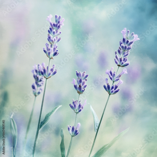 Naklejka premium Soothing spa-inspired pastel blur, calming aquas and soft lavenders blending harmoniously, peaceful and elegant fine art texture