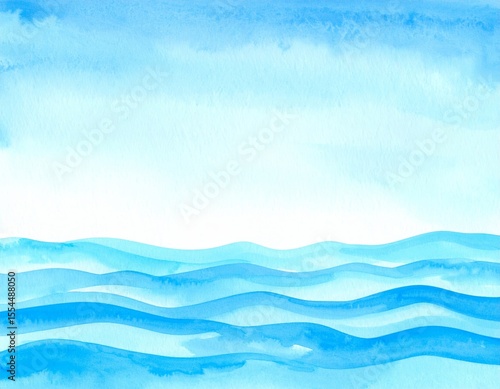 Obraz premium Soothing watercolor blue waves background, abstract ocean art for serene...
