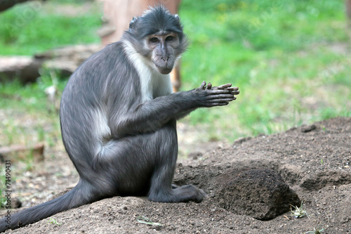© mattiaath, Obraz premium Sooty mangabey with a clod of earth