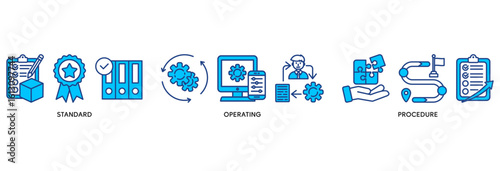 © Joniack, Naklejka premium SOP icon set vector illustration concept relate to for the standard operating procedure with an icon of instruction, quality, manual, process, operation, sequence, workflow, iteration, and puzzle