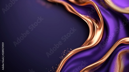 © Marina Varnava, Obraz premium Sophisticated abstract background with wavy indigo and royal purple streaks infused with metallic gold glimmers and neon gradients