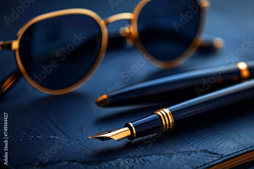 © thanakrit, Fototapeta premium Sophisticated April Fool's Day Concept with Elegant Sunglasses and a Luxury Pen