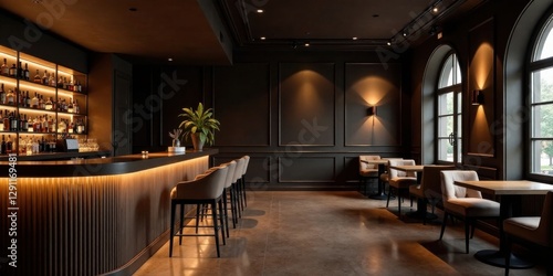 Obraz premium Sophisticated Bar Interior with Warm Lighting and Modern Seating Arrangement