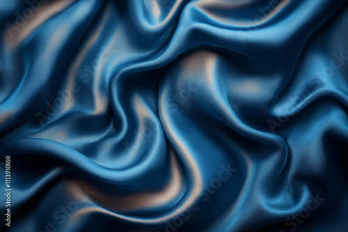 Obraz premium Sophisticated blue silk fabric drapes elegantly with intricate folds and...