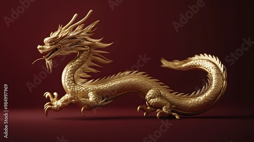 Obraz premium Sophisticated 3D Model of a Golden Chinese Dragon Statue Isolated on White...