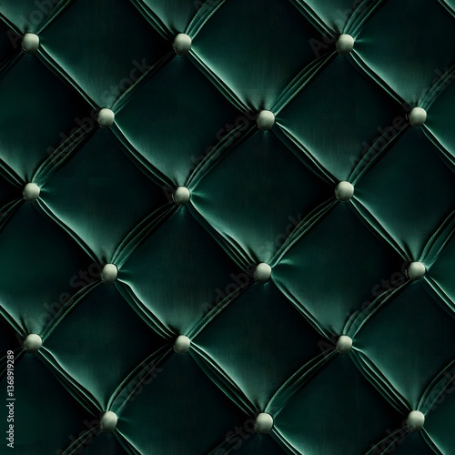 © Kaniz Fatema, Obraz premium Sophisticated Emerald Texture: A close-up of an elegant quilted emerald green fabric, exuding luxury and sophistication.
