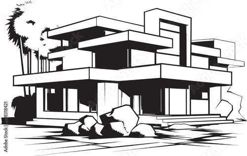 Naklejka premium Sophisticated Living Symbol Modern House Idea Vector Icon Contemporary Abode Mark Stylish House Design Vector Icon