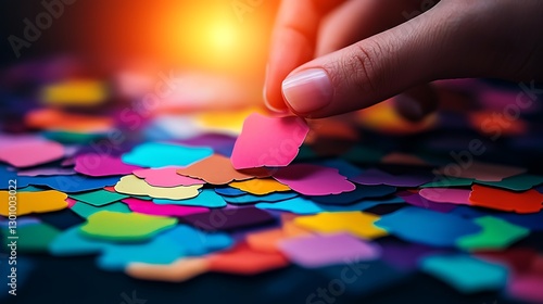 Fototapeta premium Sorting colorful paper shapes creative studio photography artistic environment close-up view crafting inspiration
