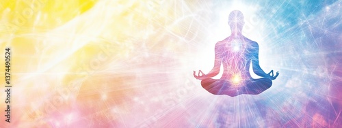 Fototapeta premium soul body spirit human spiritual astral universe aura energy light. soul body spirit meditation death space being dream heaven man god art cosmic figure yoga rebirth galaxy abstract chakra cosmos zen