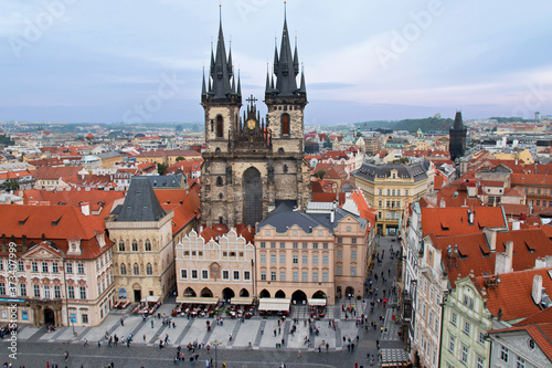 Obraz premium Soul of Prague - Old Town Square and Tyn Church. View from the observation deck of the Old Town Hall